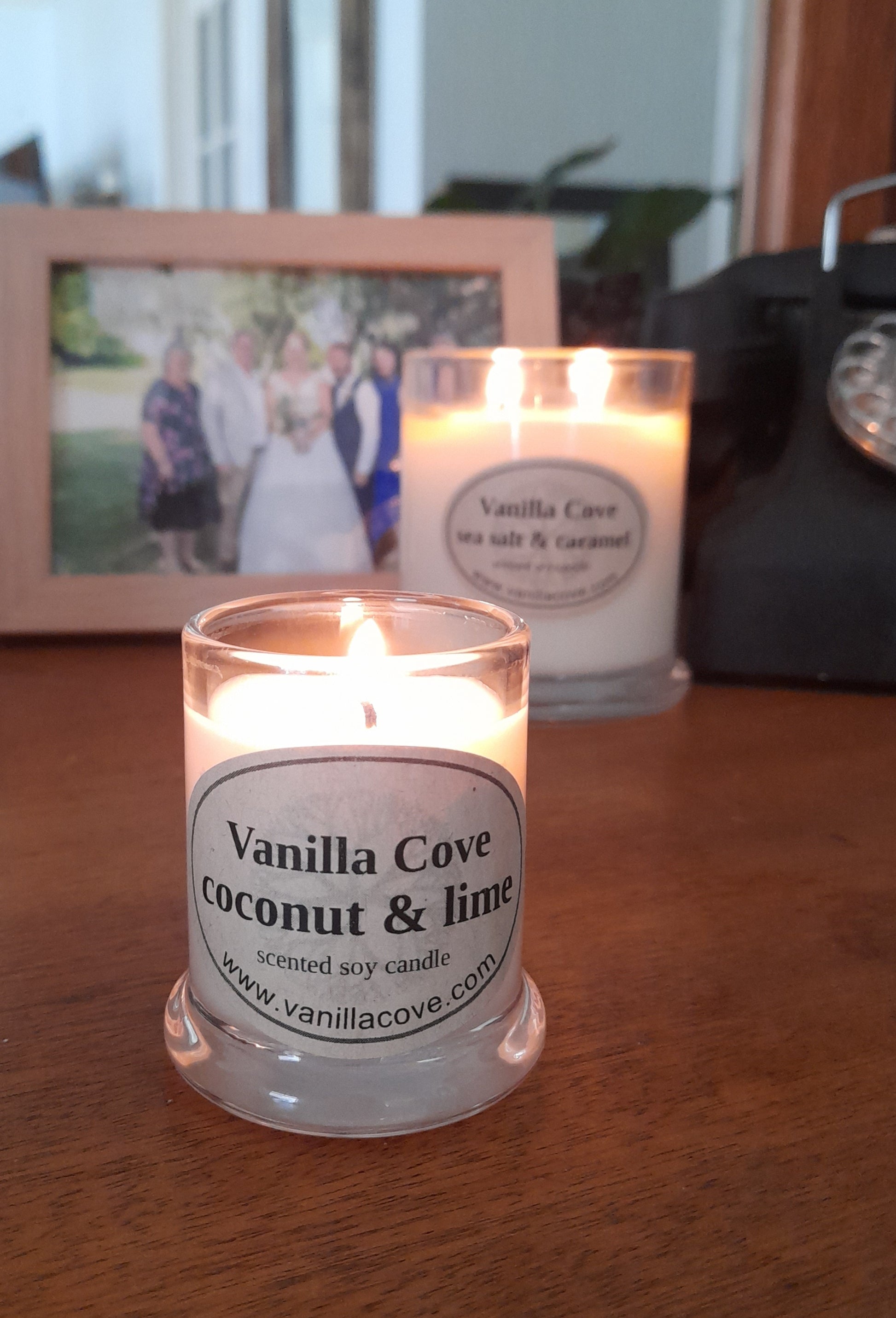Soy Wax and Cosmetic grade fragrance - this means you can actually use our candles as a massage oil or moisturiser.