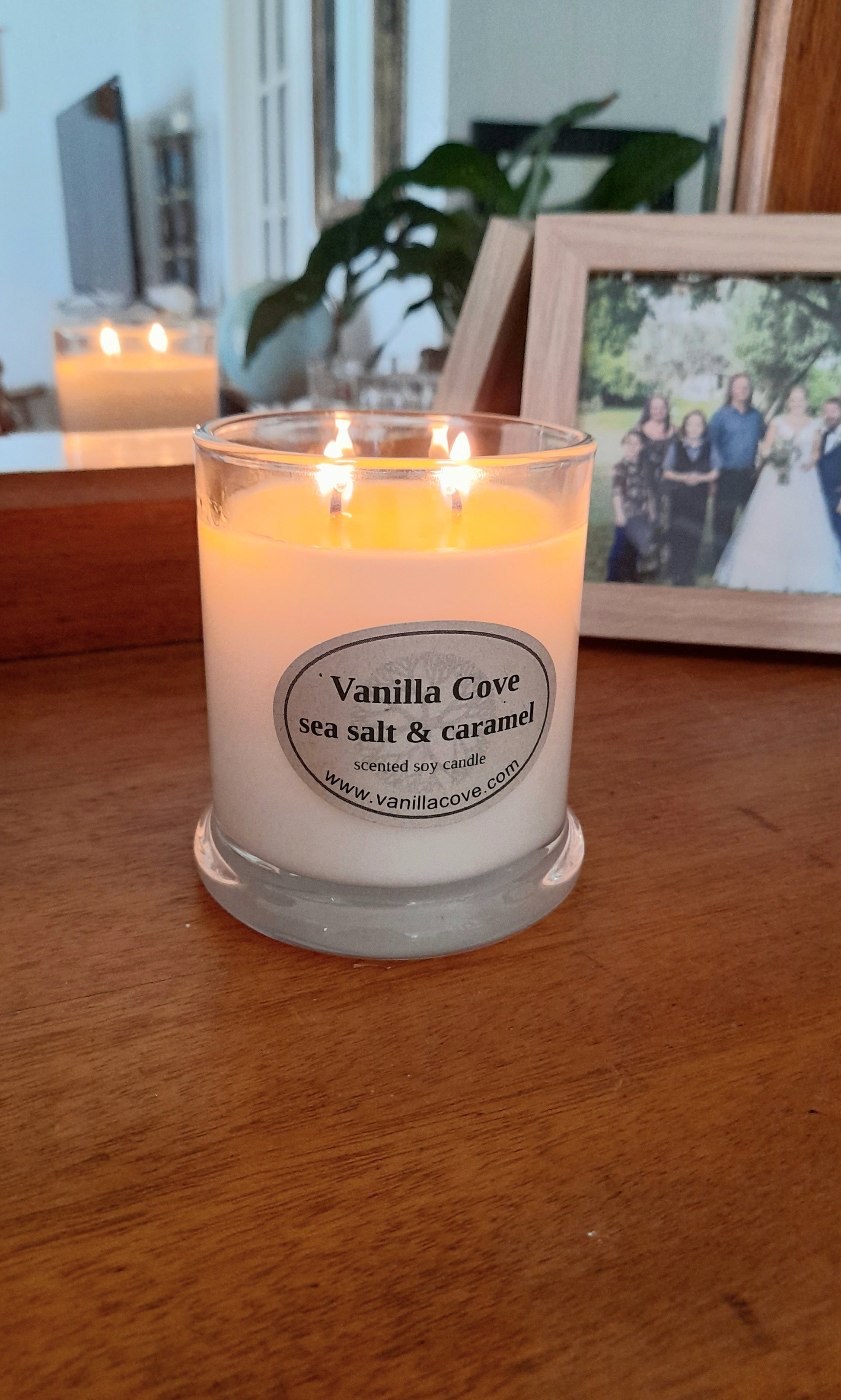 Soy Wax and Cosmetic grade fragrance - this means you can actually use our candles as a massage oil or moisturiser.