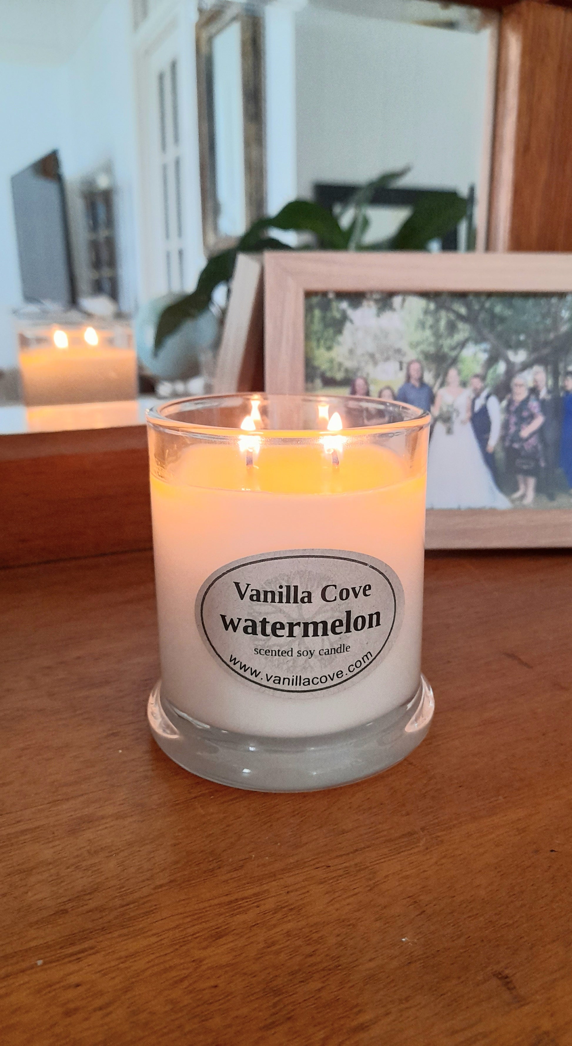 Soy Wax and Cosmetic grade fragrance - this means you can actually use our candles as a massage oil or moisturiser.