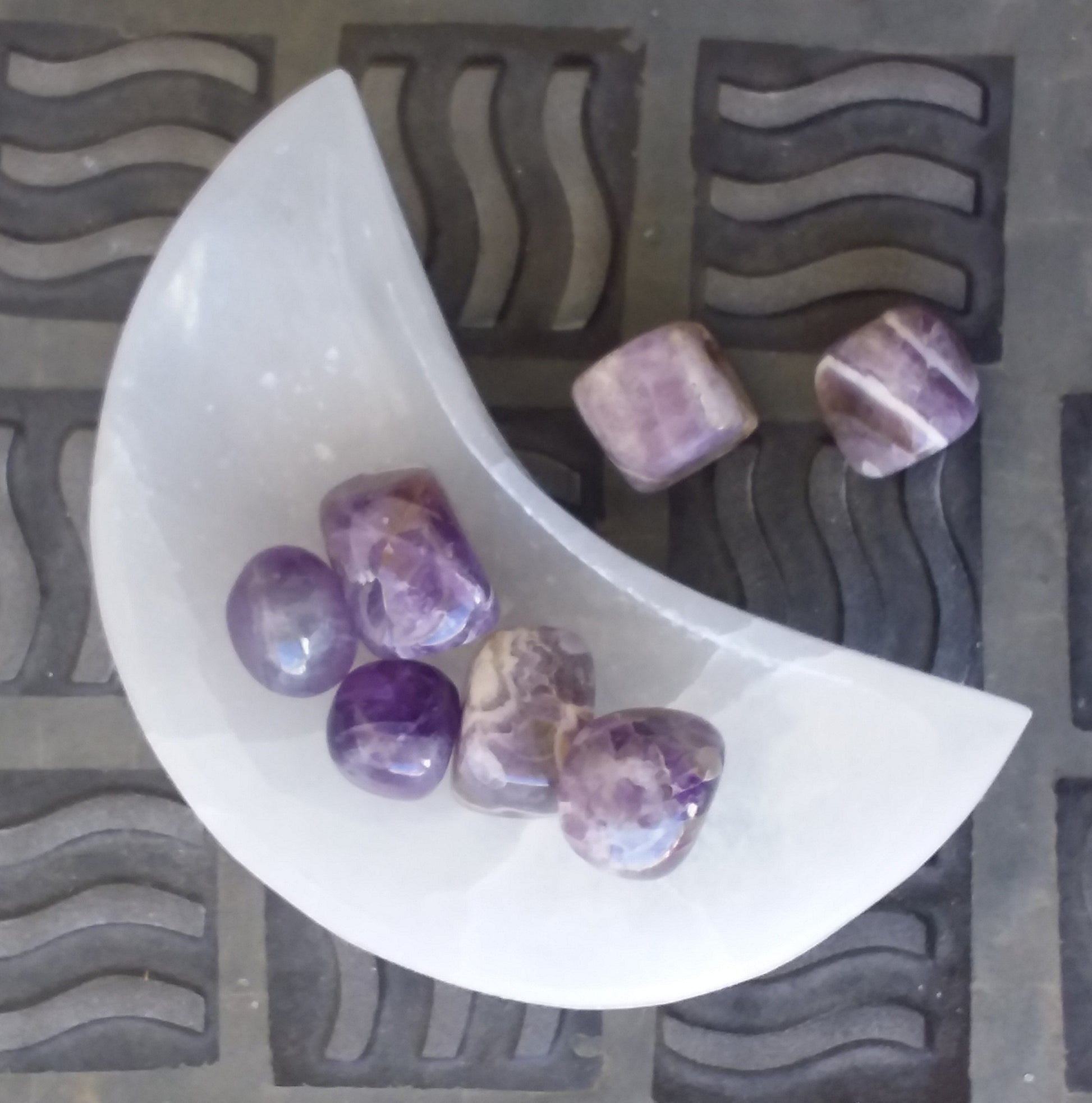 Selenite Moon Bowl is sold separately and not included in the price of the crystals