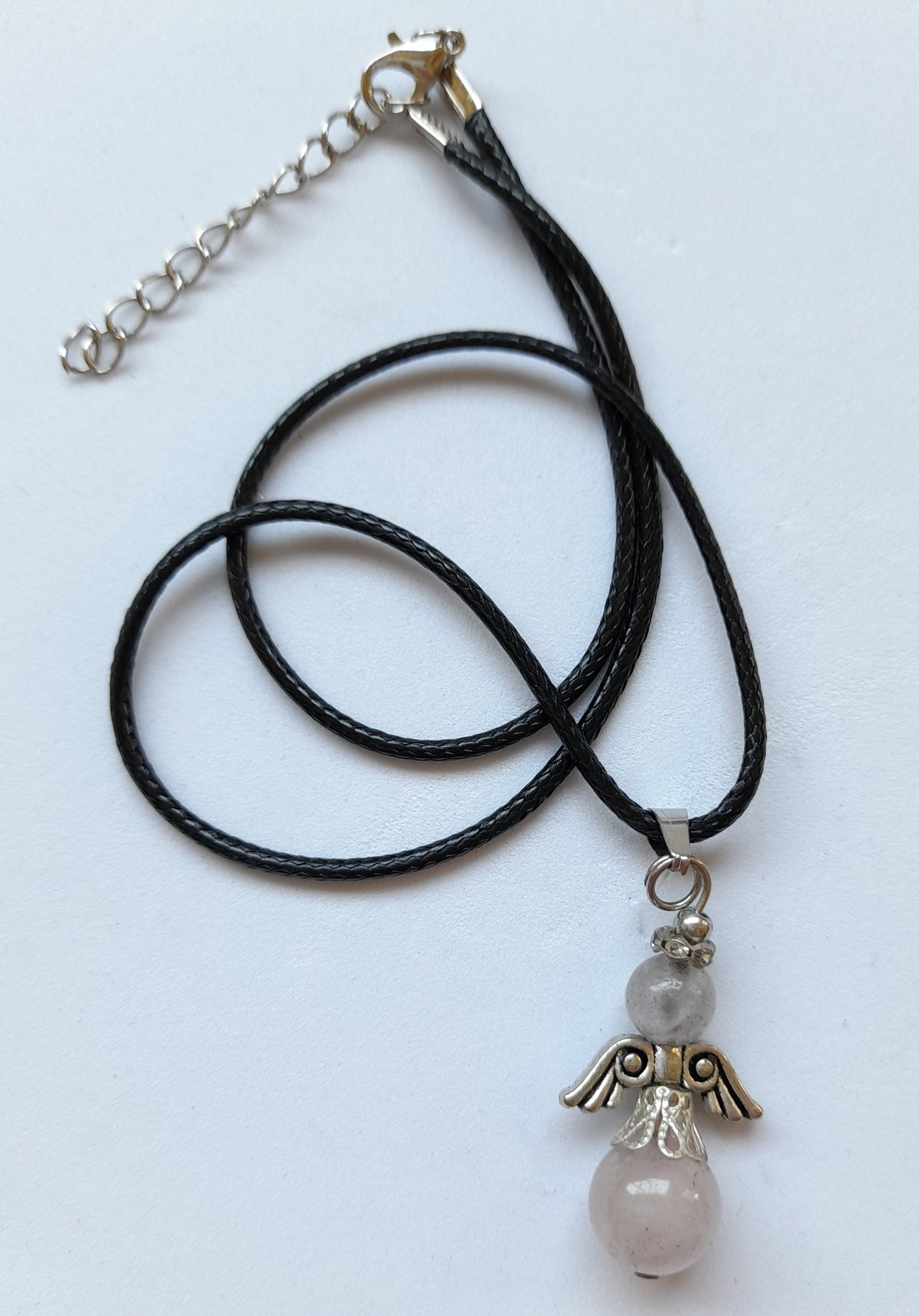 Rose Quartz Angel Necklace, please choose your cord length and colour.