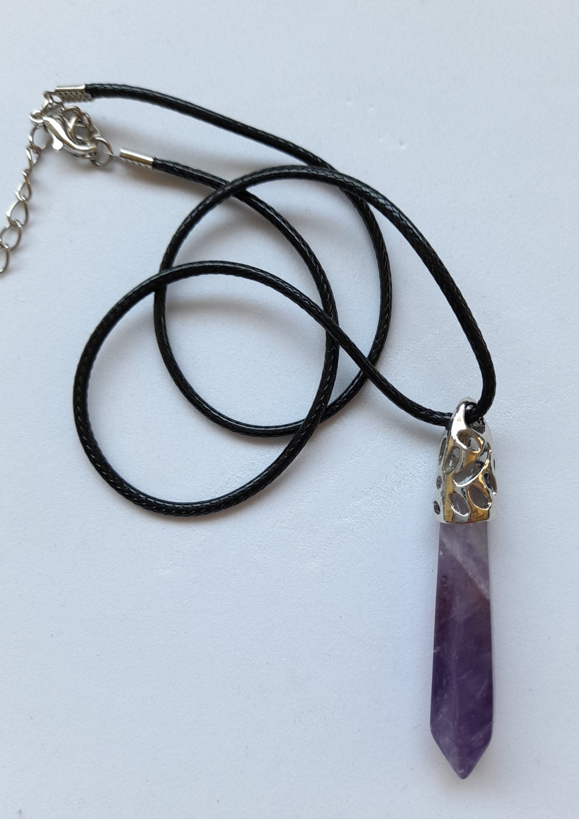Long Point Necklace Amethyst, please choose your cord length and colour.