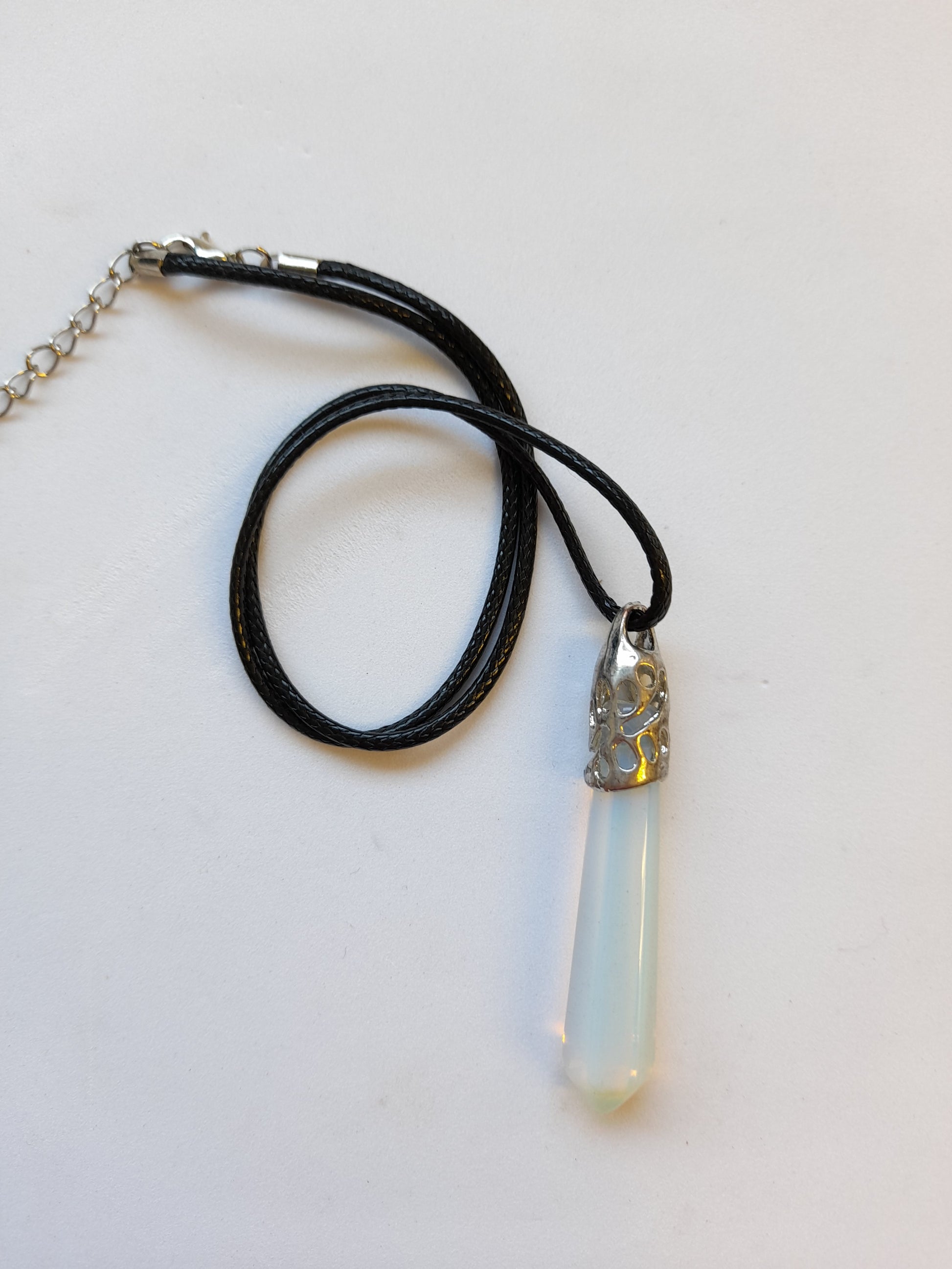 Long Point Necklace Opalite, please choose your cord length and colour.