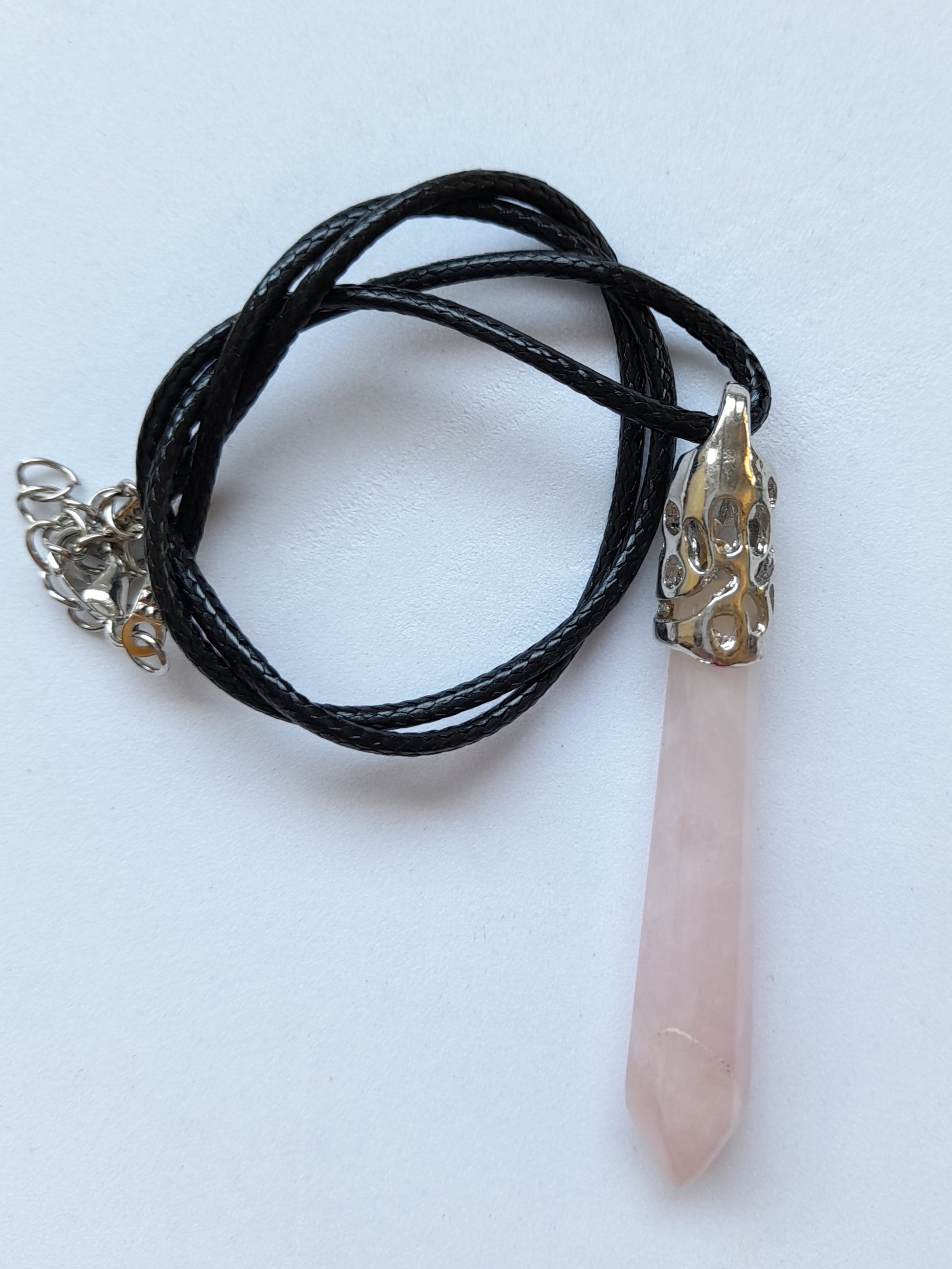Long Point Necklace Rose Quartz, please choose your cord length and colour.