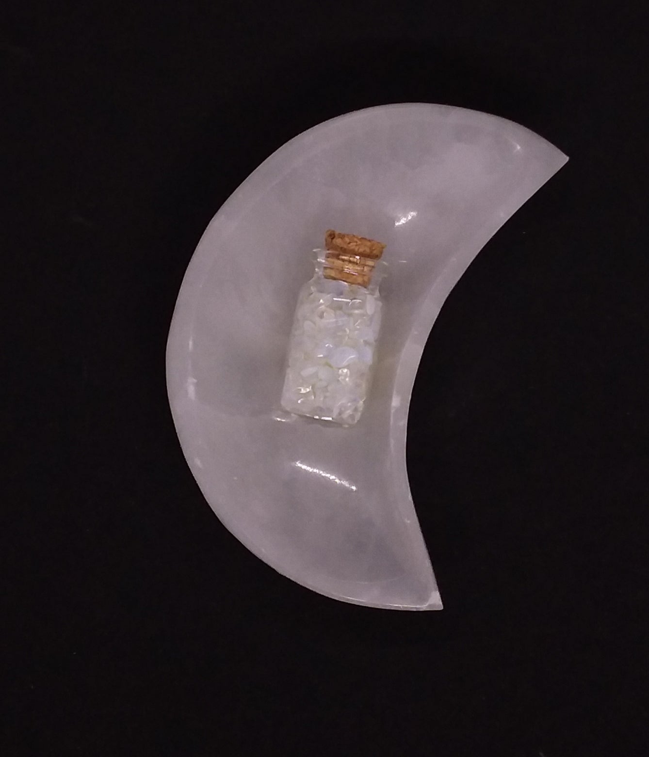 Selenite Moon Bowl is sold separately and not included in the price of the bottle
