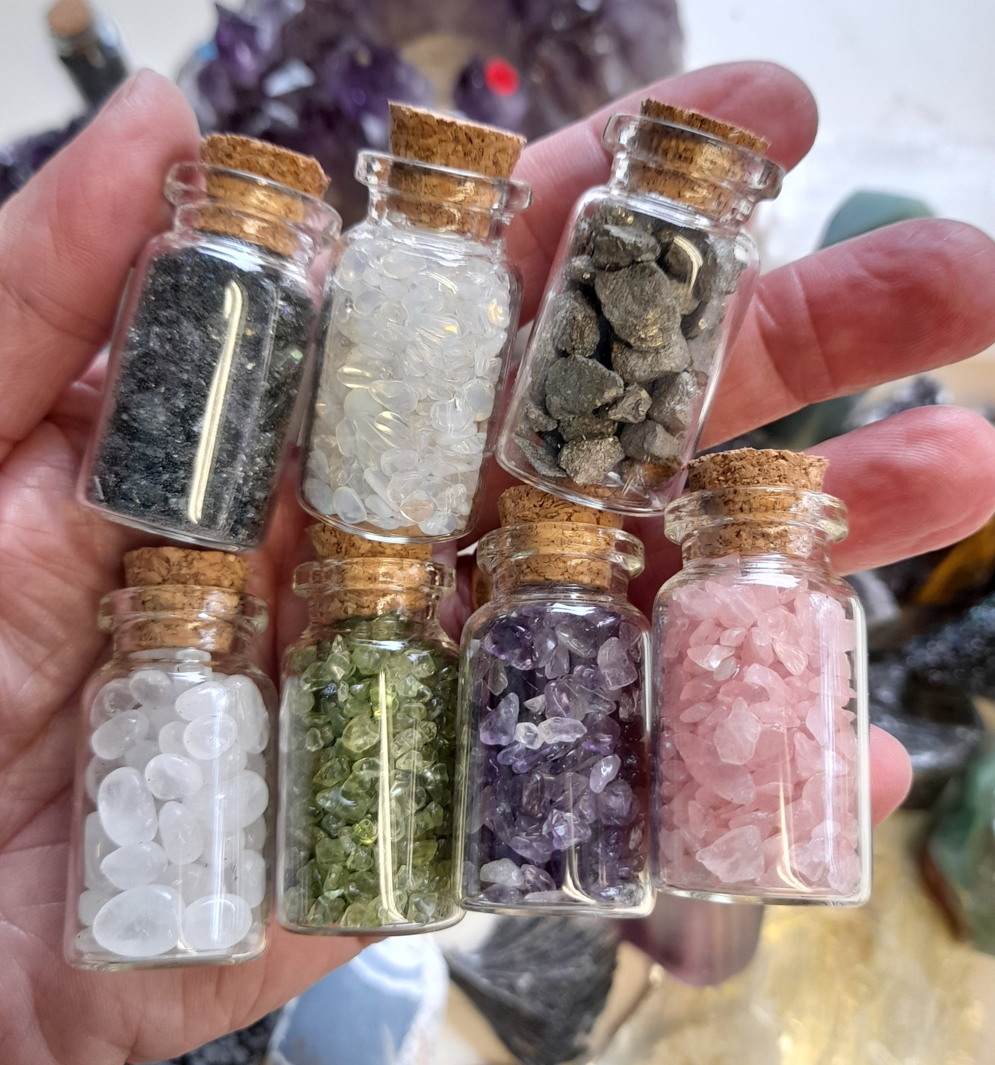 Mini bottle filled with crystal chips