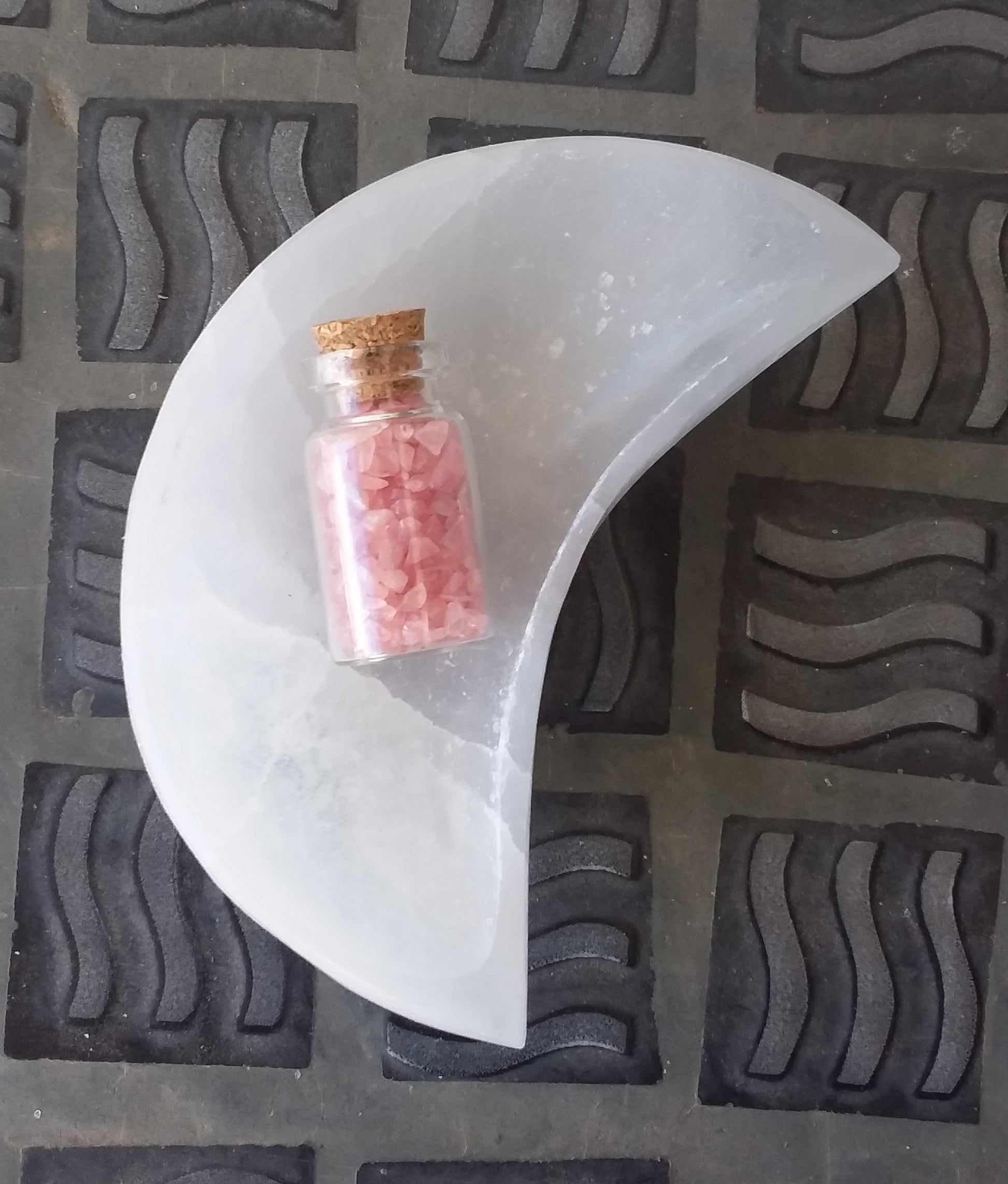 Selenite Moon Bowl is sold separately and not included in the price of the bottle