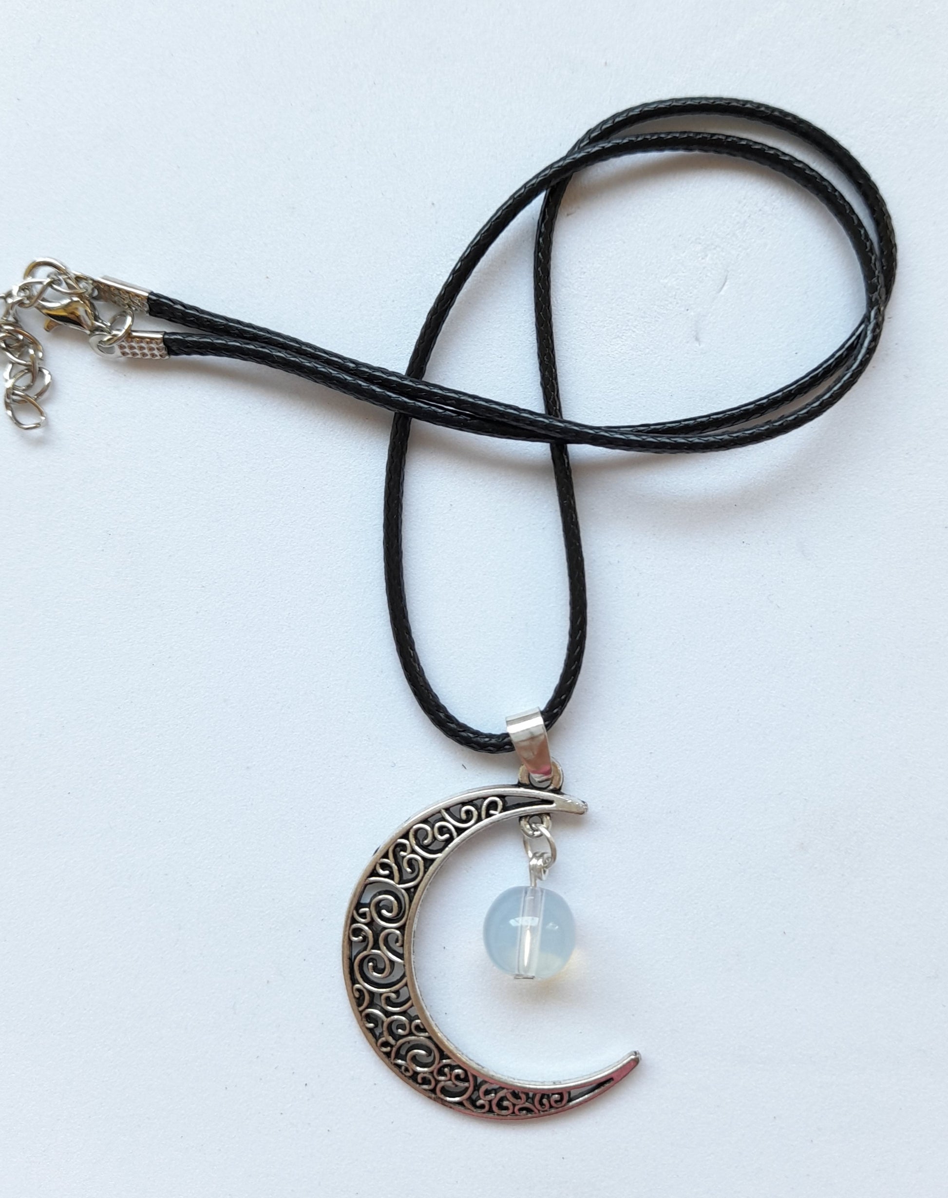 Opalite Moon Necklace, please choose your cord length and colour.