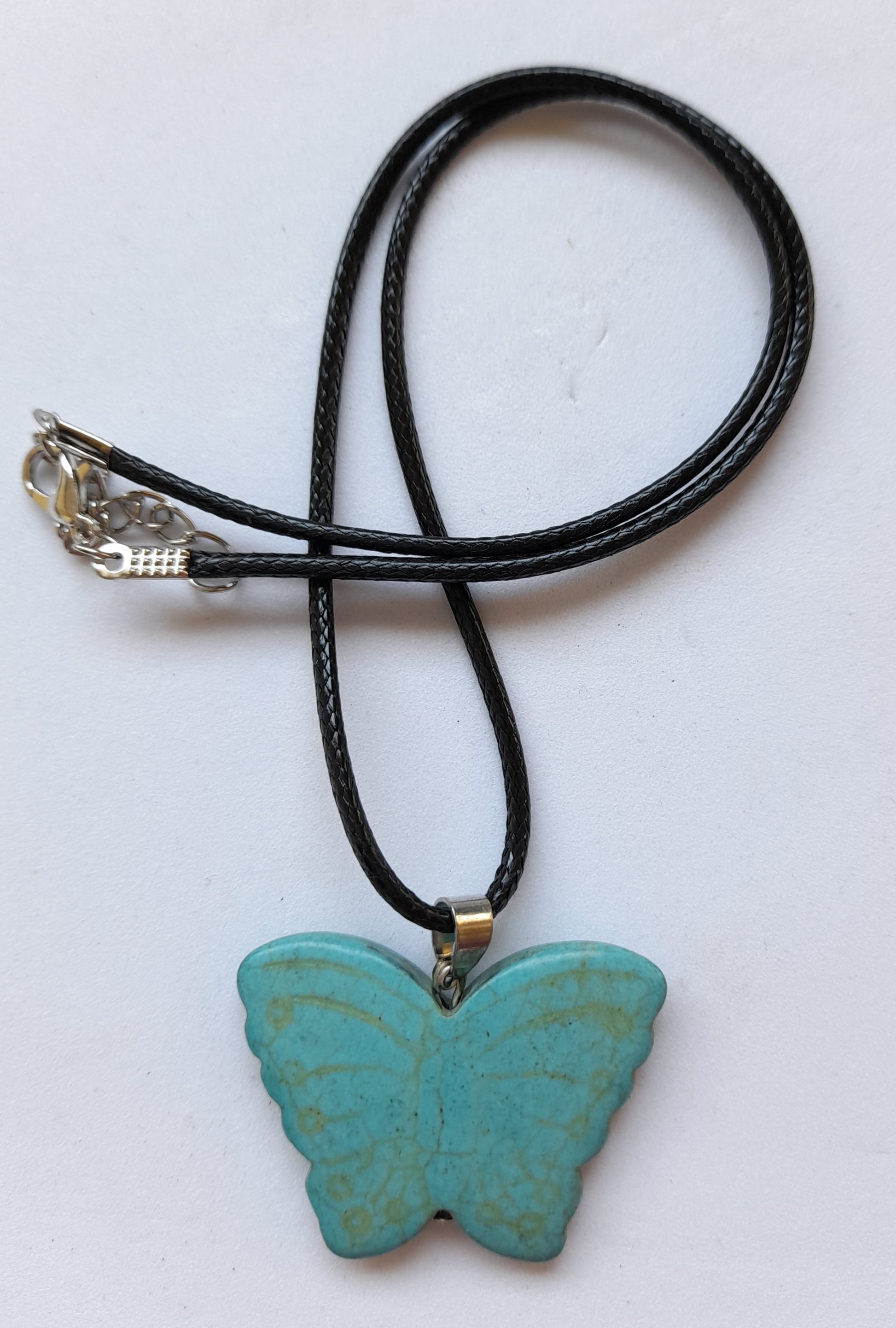 Blue Holwite Butterfly Necklace, please choose your cord length and colour.
