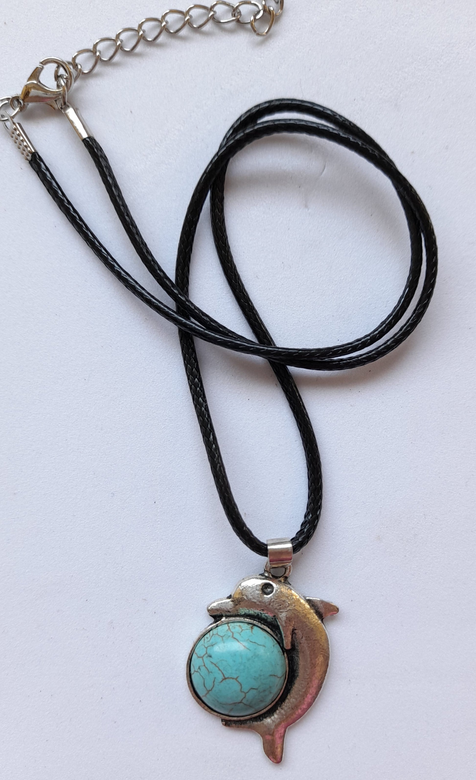 Blue Holwite Dolphin Necklace, please choose your cord length and colour.