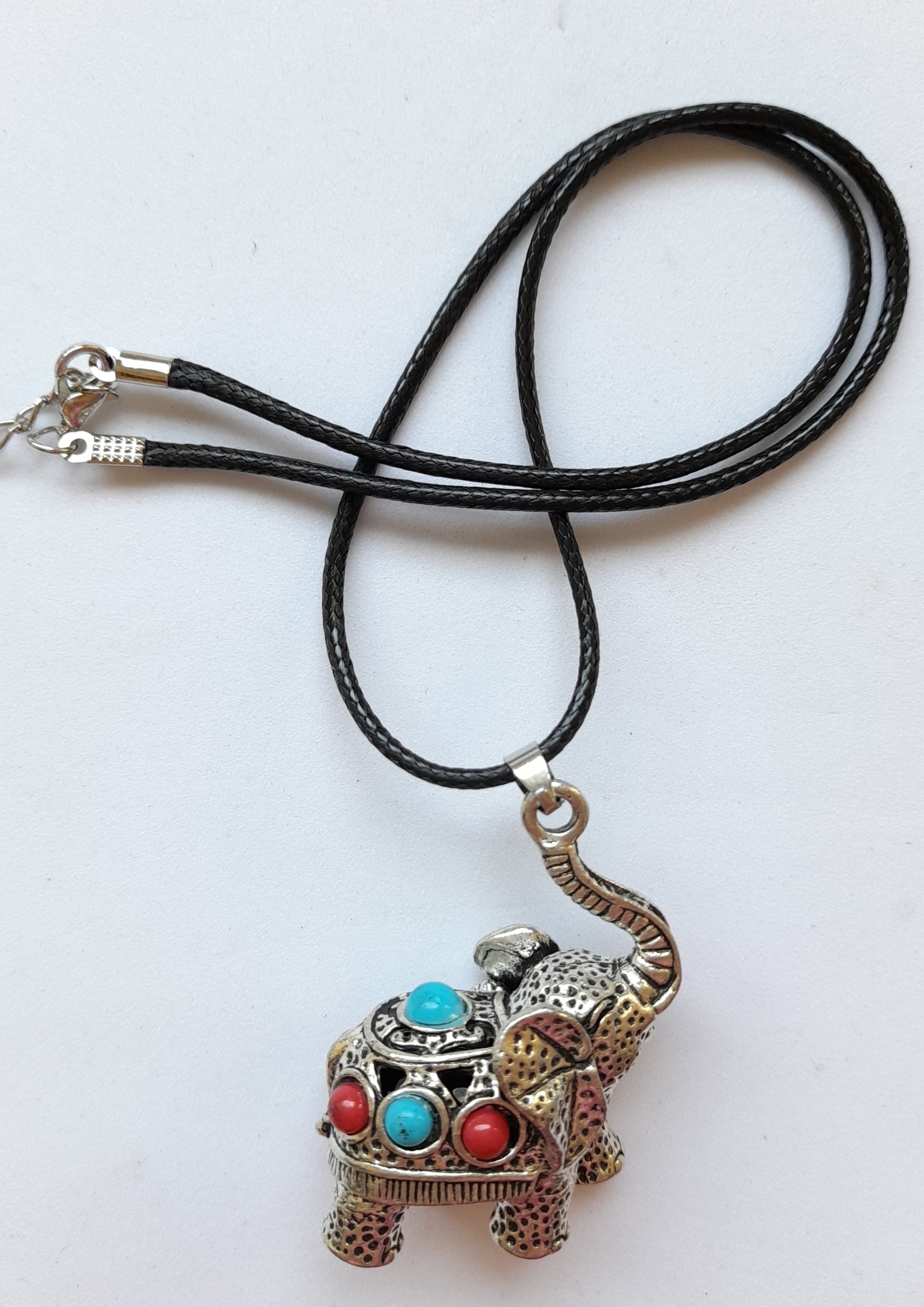 Elephant Necklace with red and blue howlite accents, please choose your cord length and colour.