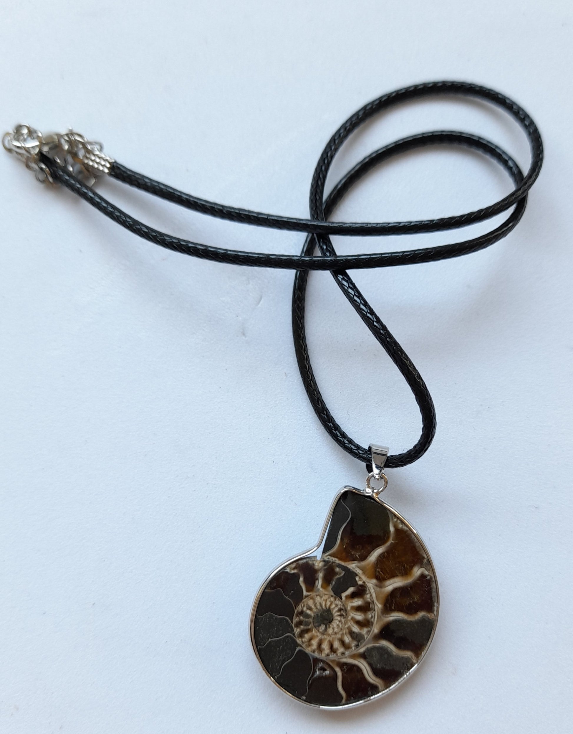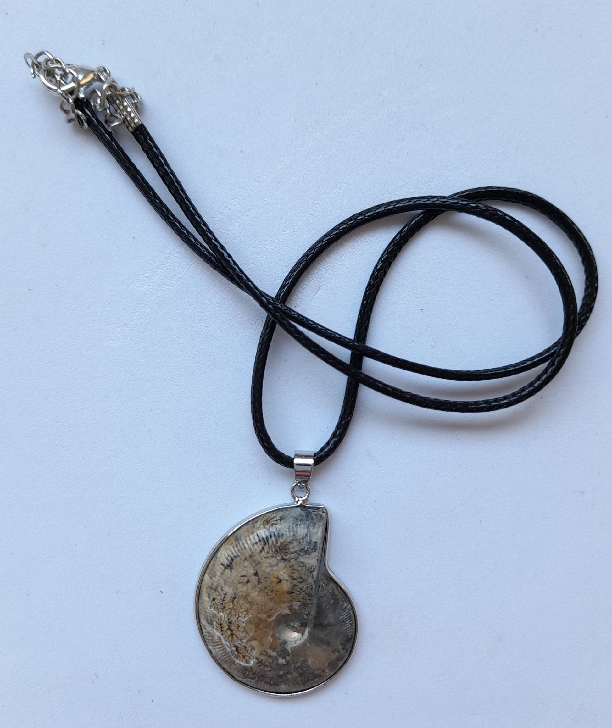 Fossil shell Stone Necklace, please choose your cord length and colour.