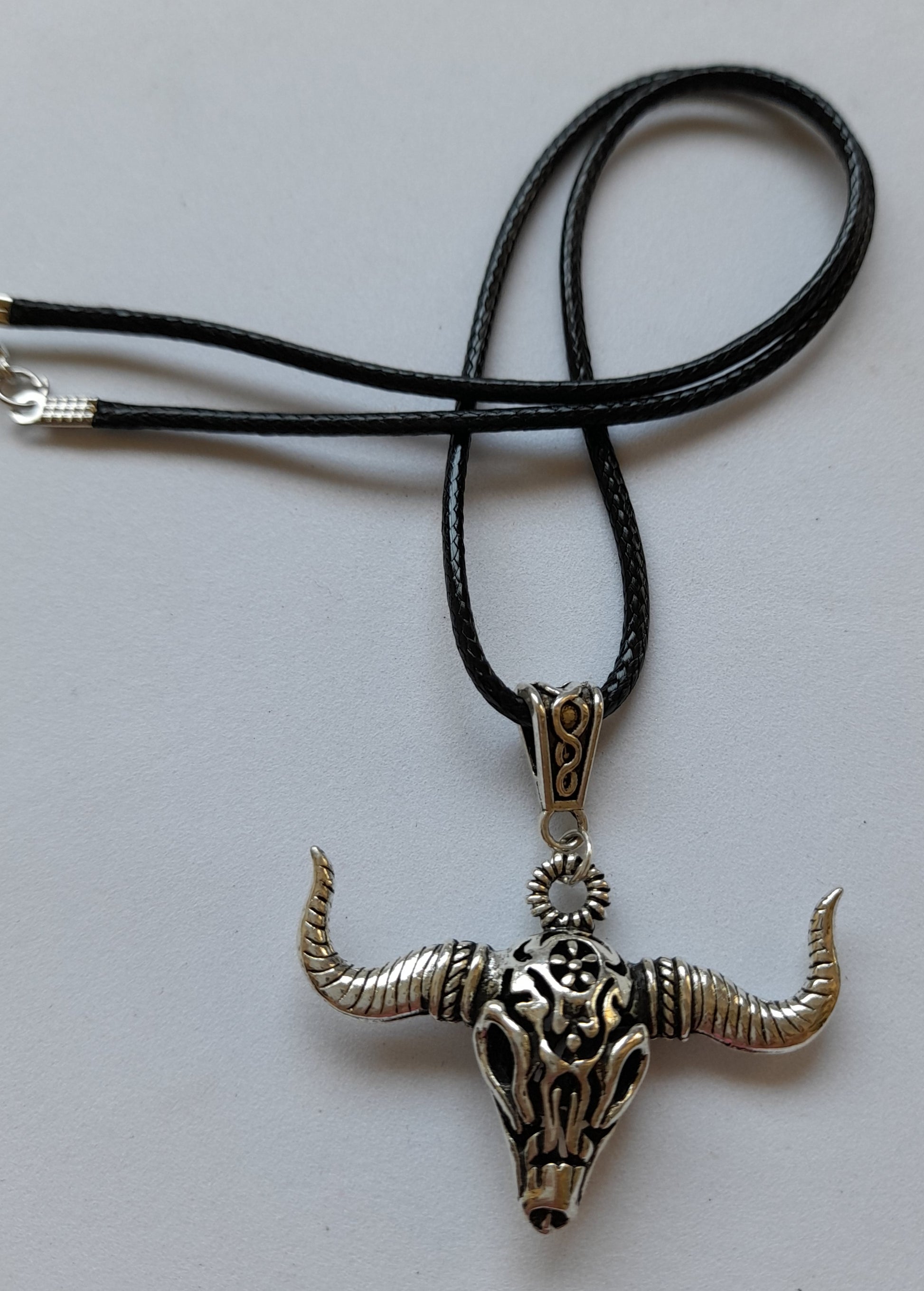 Longhorn Bull Skull Necklace, please choose your cord length and colour.