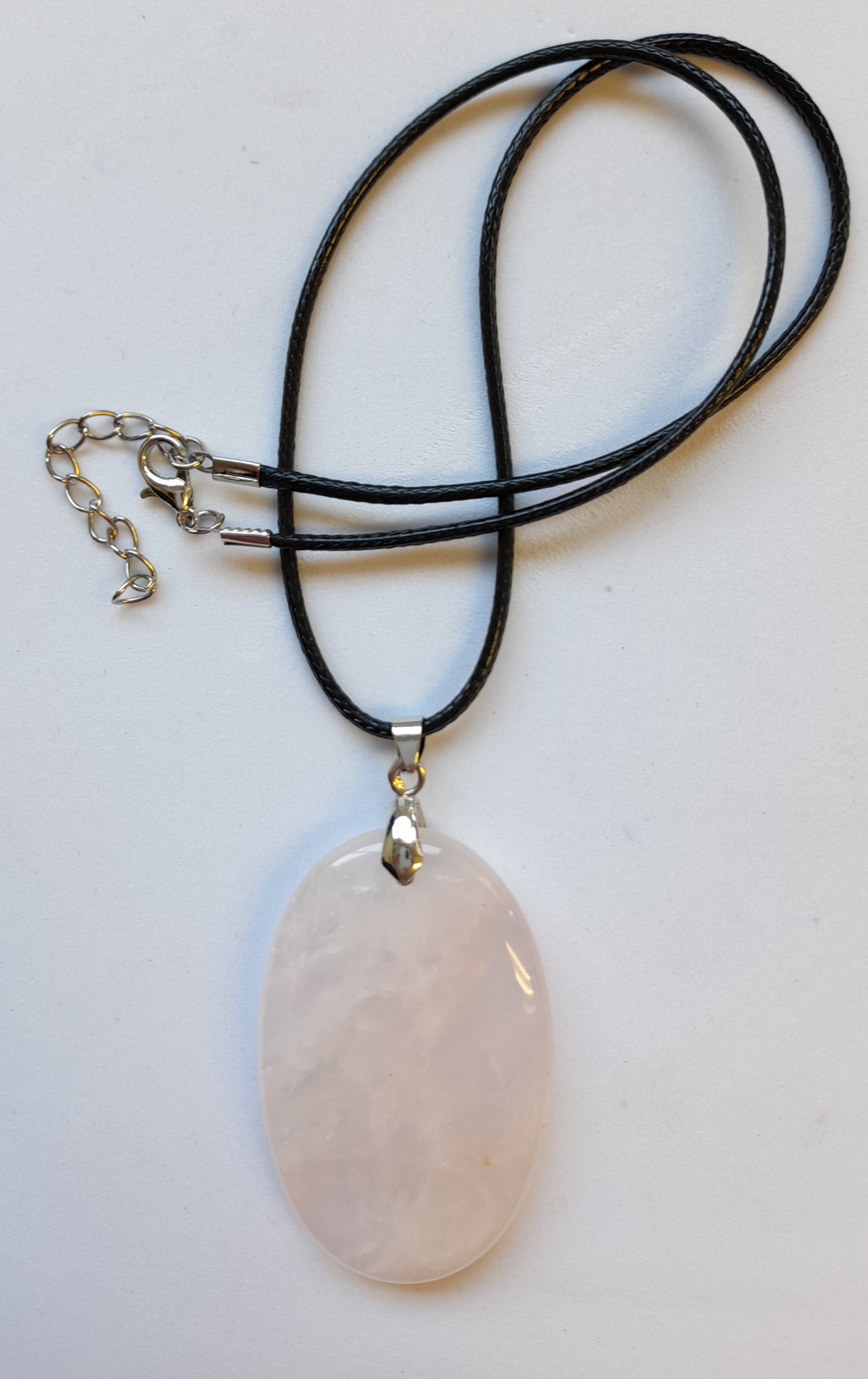 Rose Quartz Flat Oval Slab Necklace, please choose your cord length and colour.