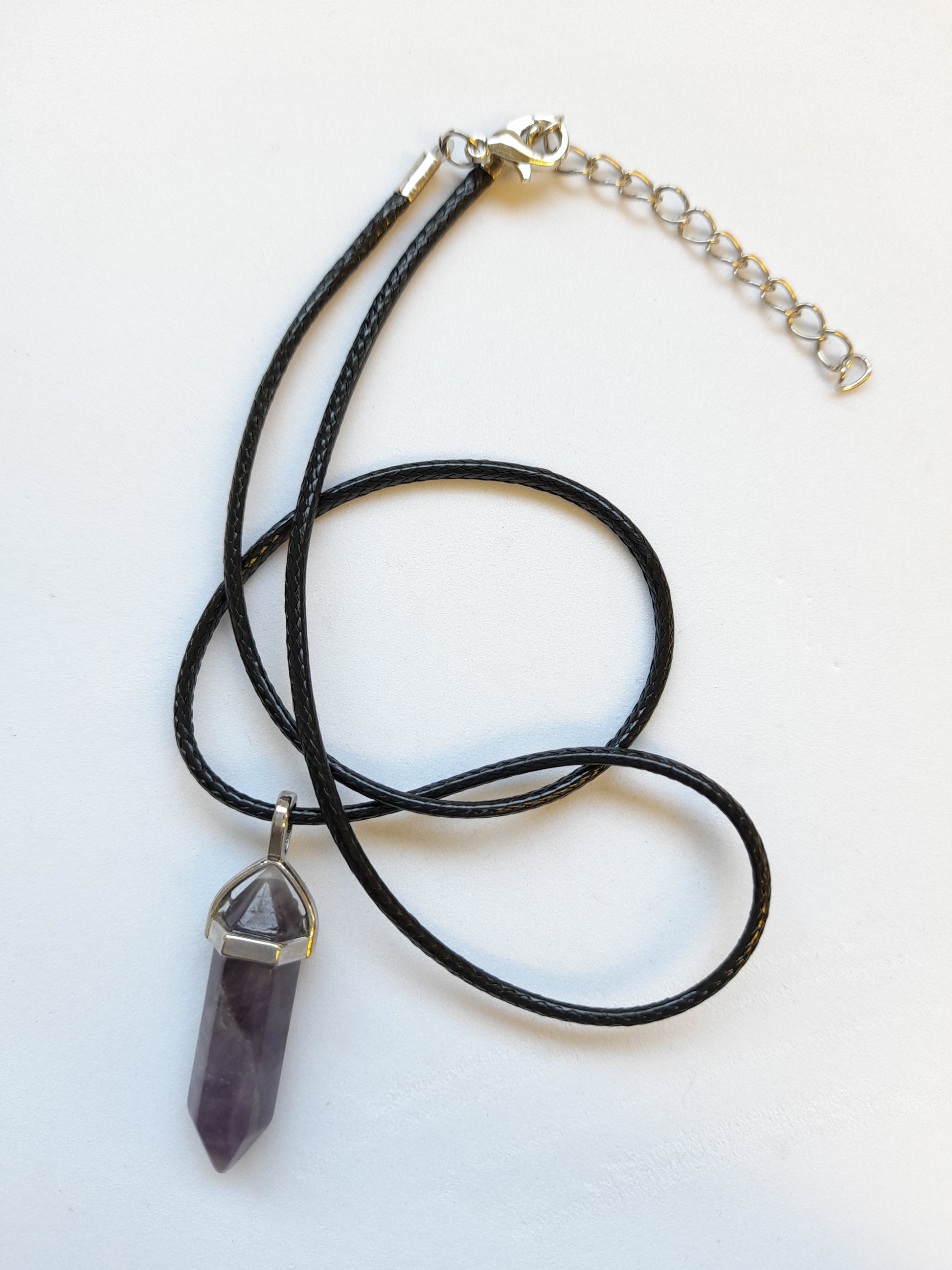 Short Amethyst Point Necklace, please choose your cord length and colour.