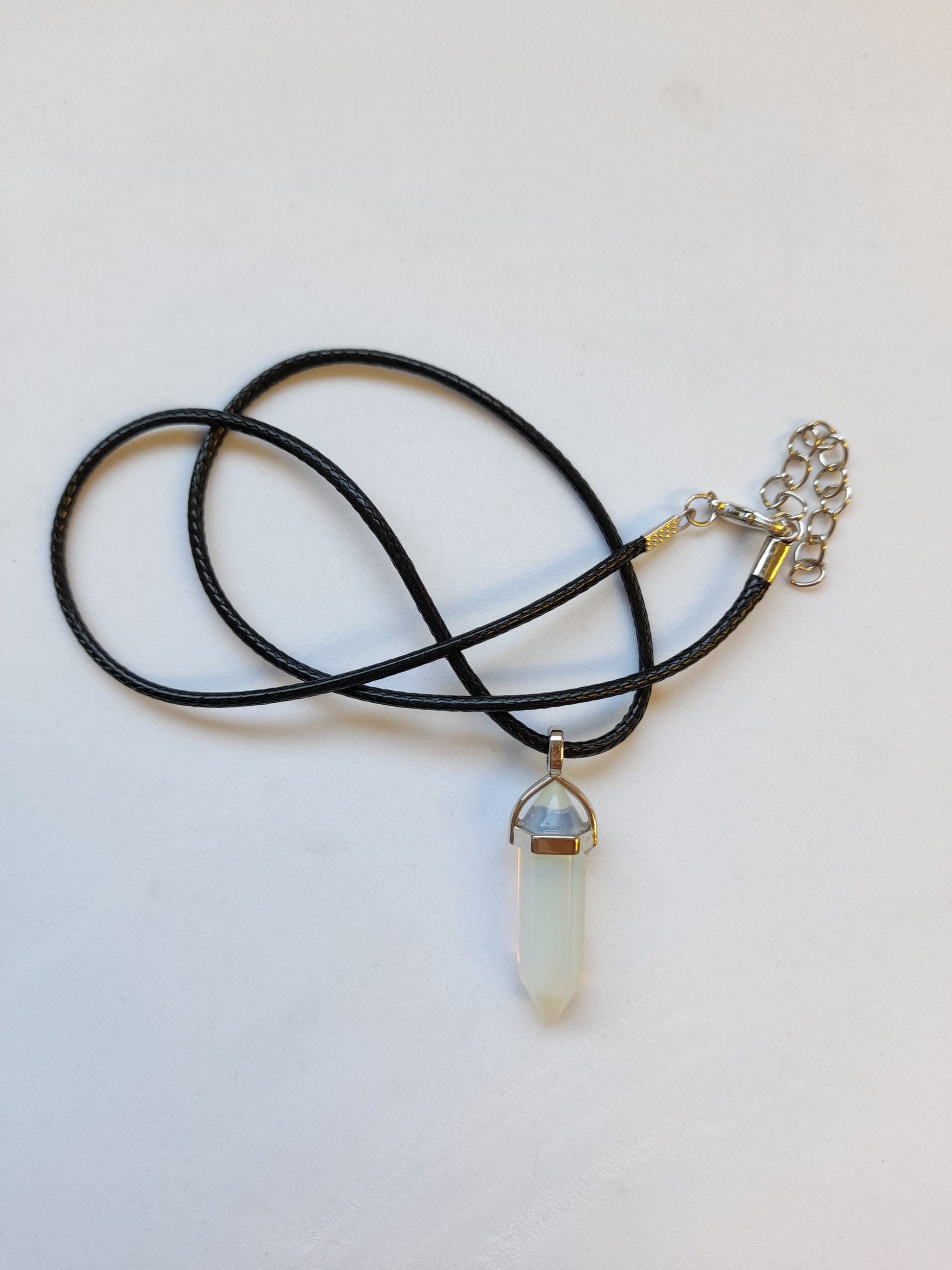 Short Opalite Point Necklace, please choose your cord length and colour.