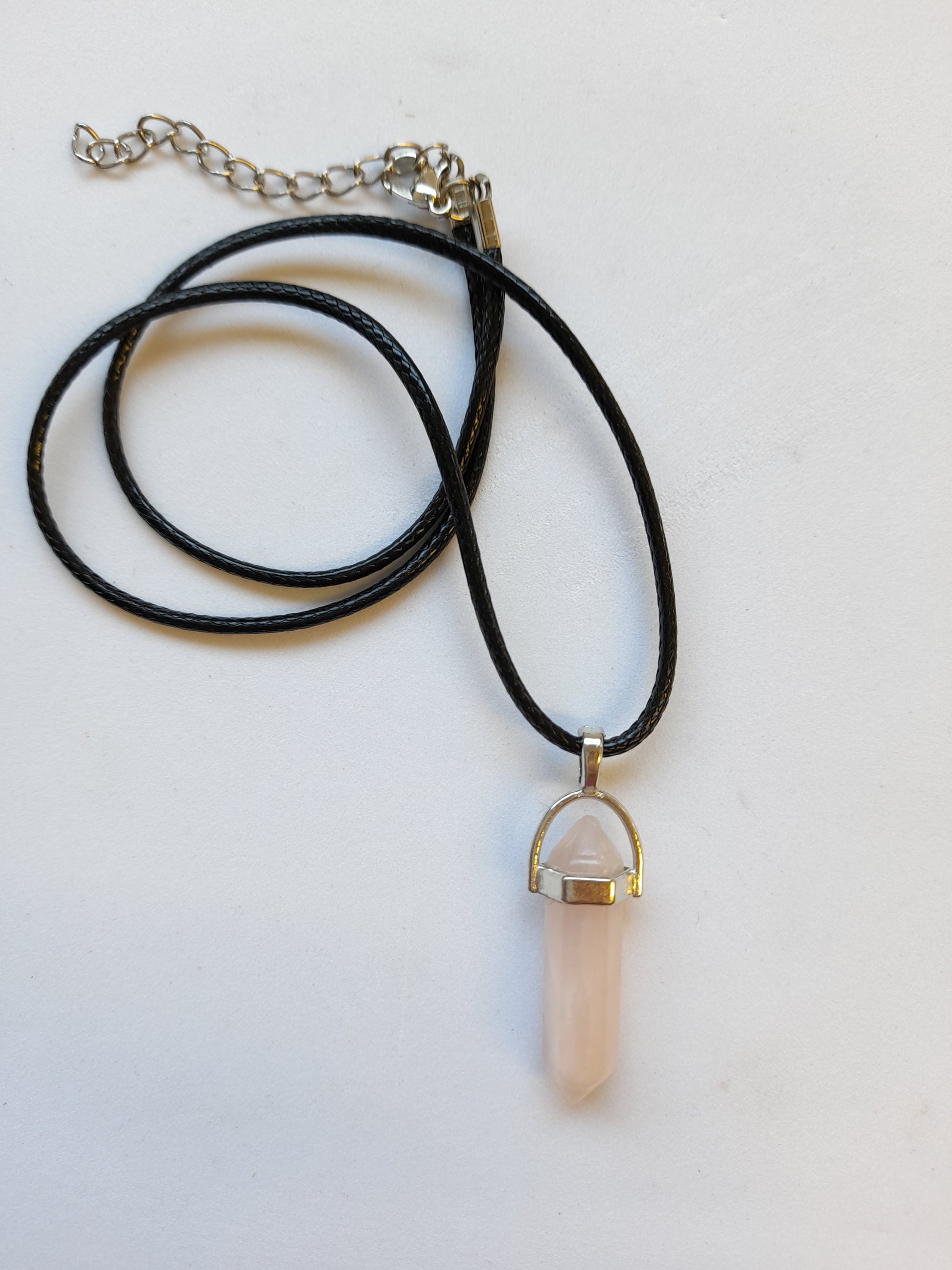Short Rose Quartz Point Necklace, please choose your cord length and colour.
