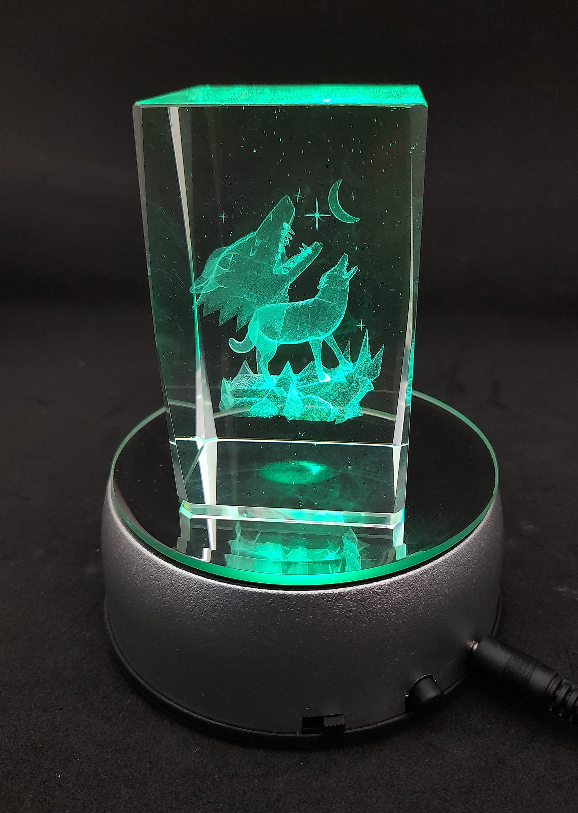 Spinning Light up base only, Wolf paperweight is there to show colours