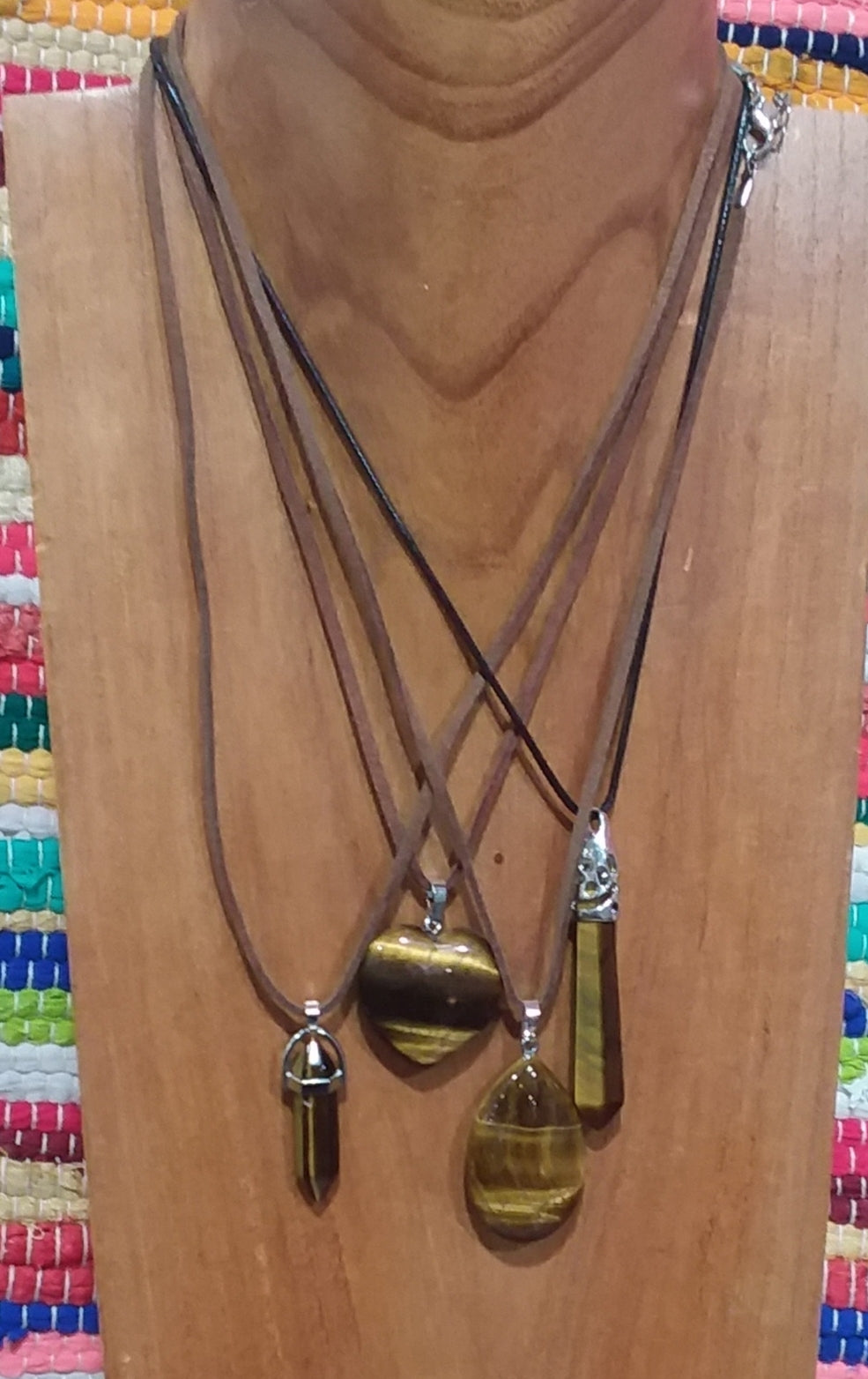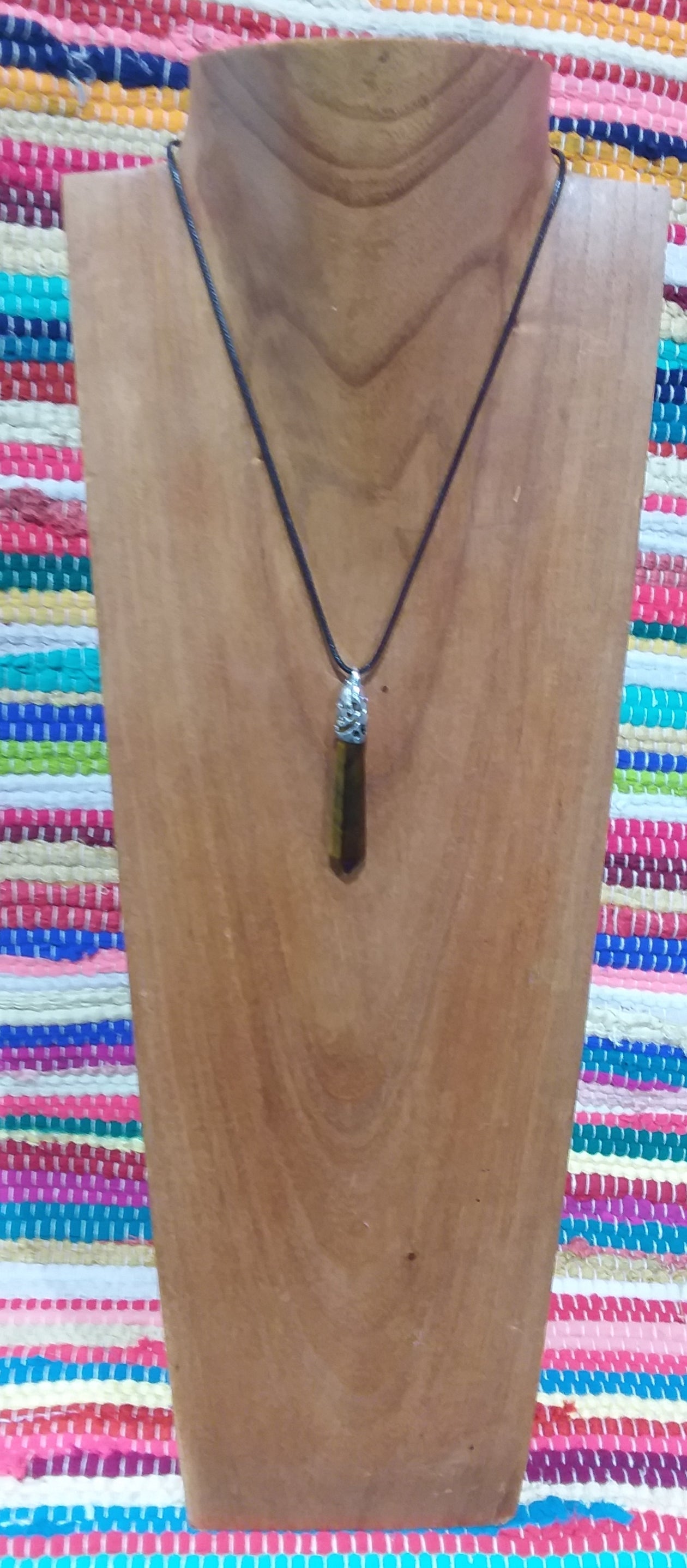 Long Tigers Eye Point Necklace, please choose your cord length and colour.